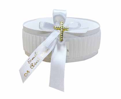 Tout d’abord un ballotin dragée boîte Catherine pour communion ! Ensuite garni de 100 grs de dragées Médicis aux amandes fraîches. Enfin personnalisé avec un ruban en satin blanc. Finalement ce ballotin dragée boîte Catherine Médicis est le cadeau invité communion idéal.