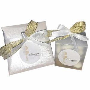 Tout d’abord un ballotin dragées communion chic. Ensuite une boîte à dragée Lézard blanche décoré d’un calice or. Finalement personnalisé et garnie avec les délicieuses dragées Médicis. Ou la boîte Cubo Médicis ? Transparente carré garnie de 40 grs de dragées Médicis et personnalisé avec vos prénoms et date de cérémonie. Cette collection de ballotin dragées communion est idéale pour s’intégrer à toute les décorations de table.